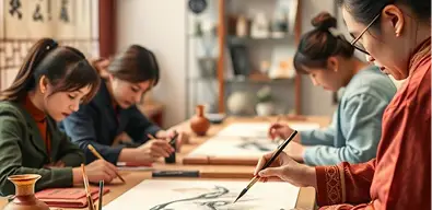 Talleres mensuales de caligrafía china con pinceles tradicionales. Aprende el arte milenario de la escritura china, desde trazos básicos hasta composiciones artísticas.